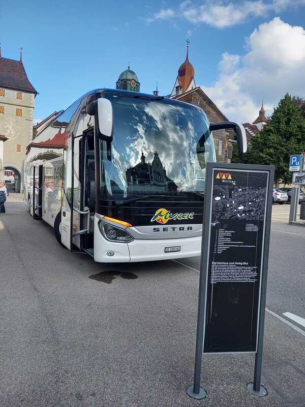Trotzdem der Wetterbericht leider nicht viel Gutes versprach, machten sich 47 Senioren/innen von Gelterkinden und Umgebung auf zu einem Tagesausflug mit einem Sägesser Bus auf die Marbachegg. Über Wangen a.d.A. - Herzogenbuchsee - Wynigen - Lueg - Sumiswald - Langnau i.E. erreichten wir Marbach. Dort führte uns die Gondel dann hinauf auf 1500 m.ü.M. zur Marbachegg. Bei einem guten Mittagessen/Dessert verweilten wir im gemütlichen Restaurant. Leider, wie vorausgesagt, versperrten uns düstere und tief hängende Wolken die Aussicht auf die Schrattenflue. Wenigstens war die Sicht nach unten auf den Kemmeriboden gut! Nach der Weiterfahrt erreichten wir das Städtchen Willisau, wo die Sonne uns den Kaffeehalt doch noch etwas verschönerte und zu einem kleinen Spaziergang einlud. Ca 18.00 Uhr trafen wir alle wieder wohlbehalten mit schönen Erinnerungen in Gelterkinden ein. Herzlichen Dank an den Chauffeur Philipp Tobler von Sägesser Reisen für die vorsichtige Fahrweise! Euer Reiseleiter Walti